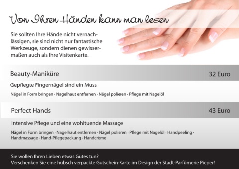 Sie sollten Ihre Hände nicht vernach- Parfümerien Feldmann und Pieper in Bocholt und Emmerich
